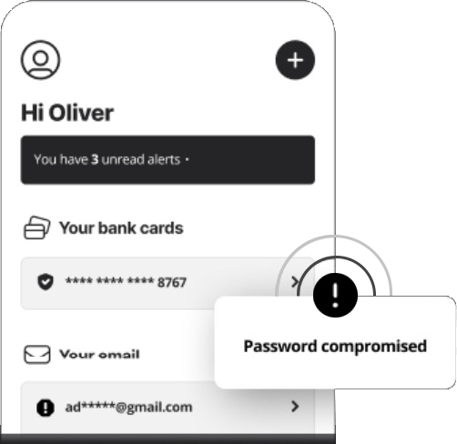 Over 40% of UK consumers have had their card details compromised. We monitor and protect your financial data online.